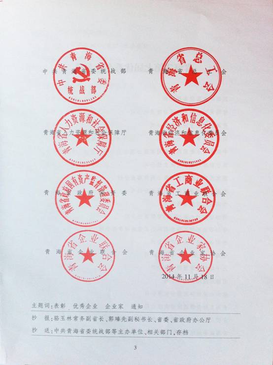 由省委統(tǒng)戰(zhàn)部、省總工會(huì)等8家單位聯(lián)合組織開展的"青海省優(yōu)秀企業(yè)、企業(yè)家"評選表彰活動(dòng),經(jīng)過多重、嚴(yán)格評審,青海省物產(chǎn)集團(tuán)總公司榮獲"青海省第七屆優(yōu)秀企業(yè)"稱號(hào)。集團(tuán)及所屬各公司將繼續(xù)發(fā)揚(yáng)成績、再接再厲,進(jìn)一步發(fā)揚(yáng)改革創(chuàng)新精神,不斷開拓市場,攻堅(jiān)克難、腳踏實(shí)地、真抓實(shí)干,為實(shí)現(xiàn)物產(chǎn)集團(tuán)科學(xué)穩(wěn)健發(fā)展做出新貢獻(xiàn)。