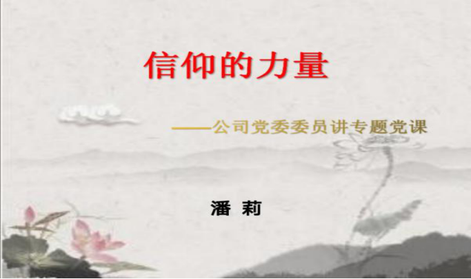 公司黨委委員、紀委副書記潘莉同志以《信仰的力量》為題講專題黨課。黨課從"信仰可以使強大的對手臣服;信仰可以升華世界上最偉大的愛;信仰缺失可以讓一個民族失去方向"三大主題闡述了信仰的力量是無窮的,堅定的理想信念,永遠是激勵我們奮勇向前、克難制勝的不竭力量源泉。