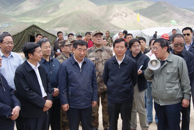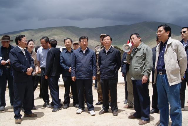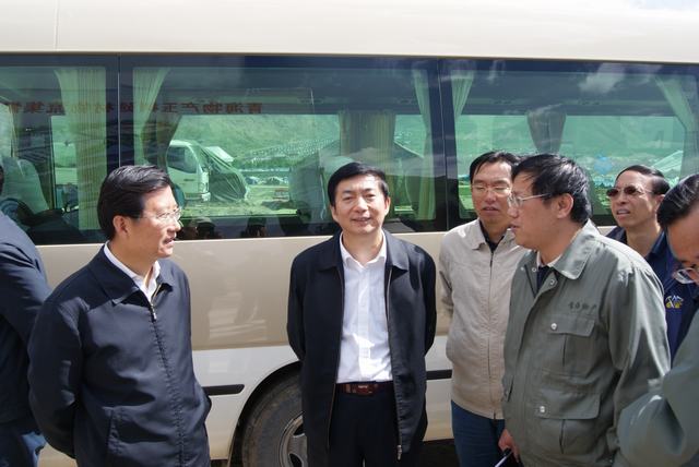 6月19日,中共中央政治局委員、國務院副總理、國務院抗震救災總指揮部總指揮回良玉率領相關部委領導,在青海省委書記強衛(wèi)、省長駱惠寧、副省長馬順青的陪同下,來到正在晝夜施工建設的青海物產(chǎn)玉樹建材物流集散中心,視察災后重建物資儲備情況和集散中心工程建設情況。集團總經(jīng)理王玉輝向中央領導和省領導詳細匯報了建材物流集散中心建設規(guī)模和鋼材、水泥、木材三大類物資收儲情況。同時表示,青海省物產(chǎn)集團總公司將一如既往,全力以赴支援玉樹災后重建,與各路建設大軍一道,為建設美好綠色新玉樹貢獻力量。聽完匯報,回良玉副總理非常高興,并做出重要指示,要做好統(tǒng)籌組織建材物資的采購和調運工作,努力保障供應,確保質量,降低成本?;亓加窀笨偫砑笆☆I導與集團領導、工作人員合影留念。