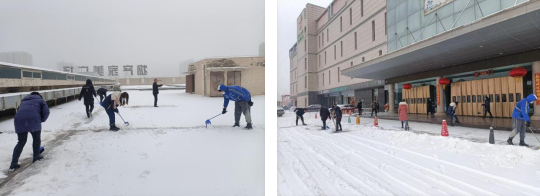 公司黨團聯(lián)合部署“快行動”,黨員干部職工“齊動員”,大家分工有序,配合默契,干勁十足。雖然天空仍舊飄雪,但是除雪現(xiàn)場熱火朝天,“黨旗”和“團旗”在白雪的映襯下格外耀眼,形成一道亮麗的風景。