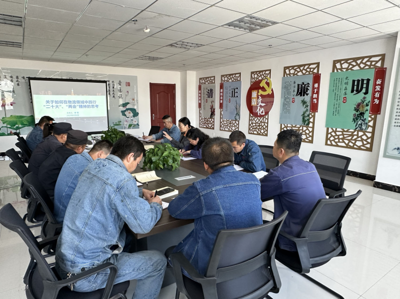 會上,集團(tuán)黨委委員、副總經(jīng)理秦翡同志以《關(guān)于如何在物流領(lǐng)域中踐行“二十大”“兩會”精神的思考》為題,從“前言及背景、‘二十大’報告相關(guān)原文、 2023‘兩會’政府工作報告相關(guān)原文、如何理解‘物流’和物流領(lǐng)域的發(fā)展展望”等五大方面為機(jī)關(guān)黨支部全體黨員深入淺出的講解黨的二十大報告中關(guān)于物流領(lǐng)域發(fā)展的新知識,并詳細(xì)闡述了物流涵義及物流體系發(fā)展歷程,并從“數(shù)字化、智能化、環(huán)保綠色”三個方面對物流領(lǐng)域做出展望。