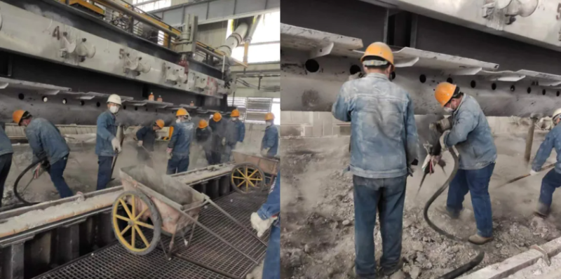 電解槽大修如同外科手術(shù),需在有限停槽期內(nèi)完成數(shù)個部件的拆解、檢測與更換。延誤一天,意味著效益的損失。為搶進(jìn)度,電解車間將人員分成四班倒,可實(shí)際干起來,所有人都不約而同選擇了“連軸轉(zhuǎn)”。技術(shù)員小王剛下白班,見夜班人手緊張,抓起手套又鉆進(jìn)了槽底:“早一天啟動,就能多增加1噸多的鋁液!”槽頂排風(fēng)機(jī)的嗡鳴聲中,安全員老周扯著嗓門喊:“防護(hù)面罩戴緊!粉塵吸進(jìn)肺里要命!”他手里的強(qiáng)光手電掃過槽底,光束里翻騰的塵埃像一場無聲的雪暴。十幾米長的電解槽如同被解剖的巨獸,槽殼敞露,陰極鋼棒上斑駁的電解質(zhì)結(jié)痂仿佛鱗片,記錄著它連續(xù)運(yùn)轉(zhuǎn)10多年的疲憊。這是大修的關(guān)鍵戰(zhàn)役—— 7天內(nèi),必須讓電解槽“復(fù)活”。