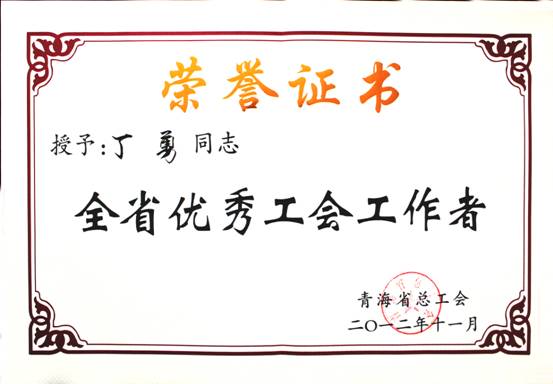 在2012年11月23日召開的青海省工會(huì)第13次代表大會(huì)上,省總工會(huì)對全省優(yōu)秀個(gè)人、模范集體進(jìn)行了表彰。集團(tuán)總經(jīng)理王玉輝同志榮獲"全省職工之友"榮譽(yù)稱號(hào);青海物產(chǎn)物資配送有限責(zé)任公司工會(huì)榮獲"全省模范職工之家"榮譽(yù)稱號(hào);馬軍同志榮獲"全省優(yōu)秀工會(huì)積極分子"榮譽(yù)稱號(hào);丁勇同志榮獲"全省優(yōu)秀工會(huì)工作者"榮譽(yù)稱號(hào)。