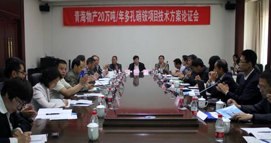 青海物產(chǎn)工業(yè)投資有限公司20萬噸/年多孔硝銨項目技術(shù)方案論證會于2013年5月17日-19日在青海西寧召開,省物產(chǎn)集團總公司總經(jīng)理王玉輝、副總經(jīng)理耿保平、北川工業(yè)園管委會副主任薛萬革、建行西寧支行副行長王硯宏蒞臨會議指導(dǎo),會議由物產(chǎn)工投常務(wù)副總經(jīng)理常海寧和專家委員會主任分別主持。煙臺萬華高級工程師王全文、山西天脊高級工程師劉金亮、湖北鐘祥凱龍高級工程師楊國富、華陸工程科技有限公司教授級高工劉艷軍、陜西興化工程師馮衛(wèi)、物產(chǎn)民爆總經(jīng)理袁海玲、物產(chǎn)工投高級工程師薛玉貴、華陸工程科技有限公司副總經(jīng)理齊吟、賽鼎工程有限公司商務(wù)部副主任劉軍彪及相關(guān)主設(shè)人員、項目建設(shè)單位代表等共36人參加了會議。專家委員會推選楊國富擔(dān)任主任委員、袁海玲擔(dān)任副主任委員。